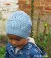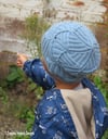 Wonky Rib Hat is worked bottom up, in the round, starting with a provisional cast on which is later finished with a stretchy bind off so that you can make sure the edge is flexible but not too tight. An interesting combination of vertical and horizontal ribbing is used, with crown decreases incorporated in the rib. The pattern has instructions for 3 sizes, from toddler to adult, and contains both written instructions and charts.