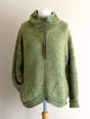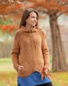 Cozy Pullover is a relaxed, seamless, top-down pullover made in stockinette stitch with garter stitch panels. It is warm and functional, thanks to a collar with overlapping fronts and drawstrings, pockets and super long sleeves with thumbholes to keep your hands toasty. Two front panels worked on the bias raise the center front and add a little interesting detail for a more experienced knitter. This sweater is worked from the top down in the round.
