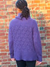 Designed to be worn with approx. 10-25 cm/4-10 in of positive ease. The honey coloured sweater is size 3, shorter version, shown with 10 cm/4 in of positive ease at chest. The purple sweater is size 3, longer version, shown with 25 cm/10 in of positive ease at chest.