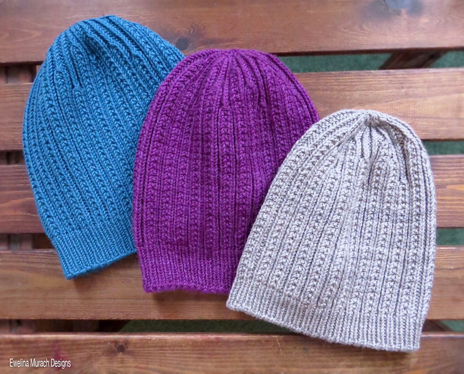Bear Hug Beanie is a unisex hat made in a simple but interesting stitch pattern that creates a very stretchy fabric. The hat is a fast knit, with easy to remember pattern repeat, and contains both written instructions and charts for 5 sizes, from toddler to adult large - so you can make matching hats for the whole family. It will look best in solid or semi-solid colourways - I made two of my samples with Miss Babs Yowza in Boysenberry and Oyster.