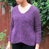 Follow The Path is a top-down and seamless sweater made in a simple lace rib pattern. The sweater has an unusual construction: It starts with a panel that runs across the back, then stitches for the back and front are picked up from the panel. The fronts are worked diagonally, which creates a v-neck, without the need for neck shaping.