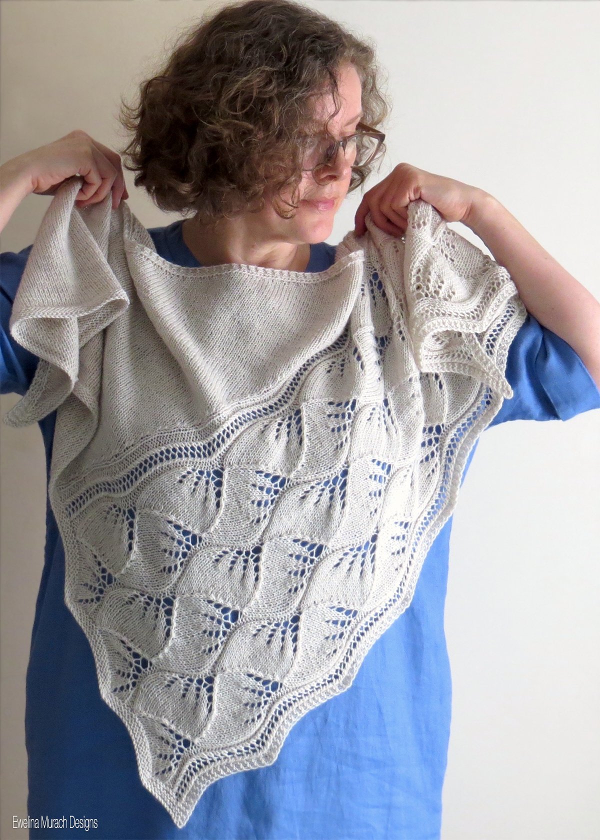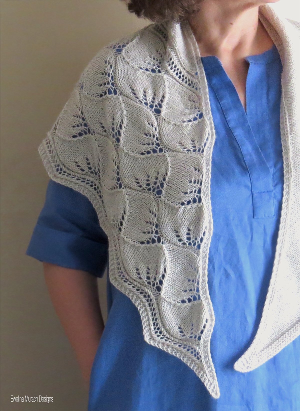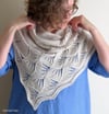 Magnolia Shawl is a semi-triangular shawl featuring a striking lace border along one side. The shawl starts from a tip and is worked sideways to the desired length - you can make it any size you want by working fewer or more pattern repeats.