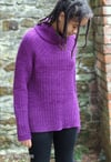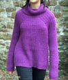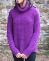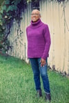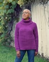 3 (4, 4, 4, 4) (5, 5, 5, 6) skeins for a sweater with turtleneck, 3 (3, 4, 4, 4) (4, 5, 5, 5) skeins for a sweater without turtleneck; shown in Boysenberry